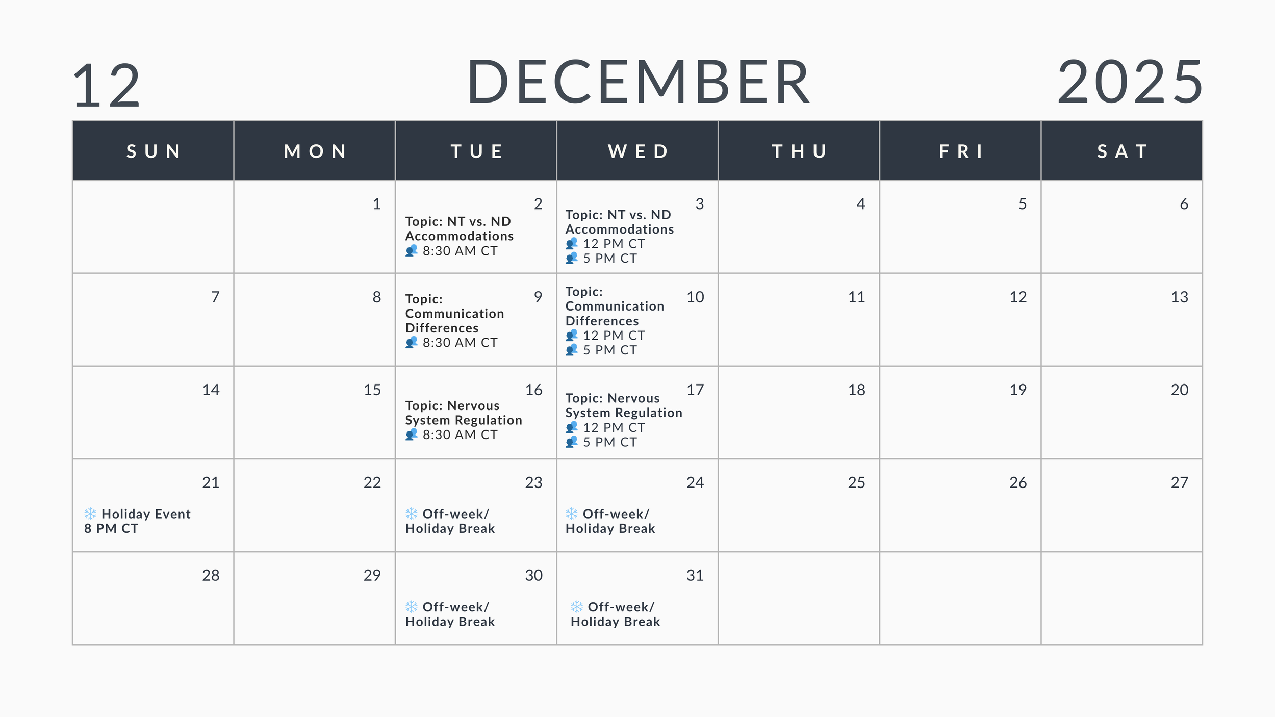 🗓 Wednesdays | 12–1 PM CT